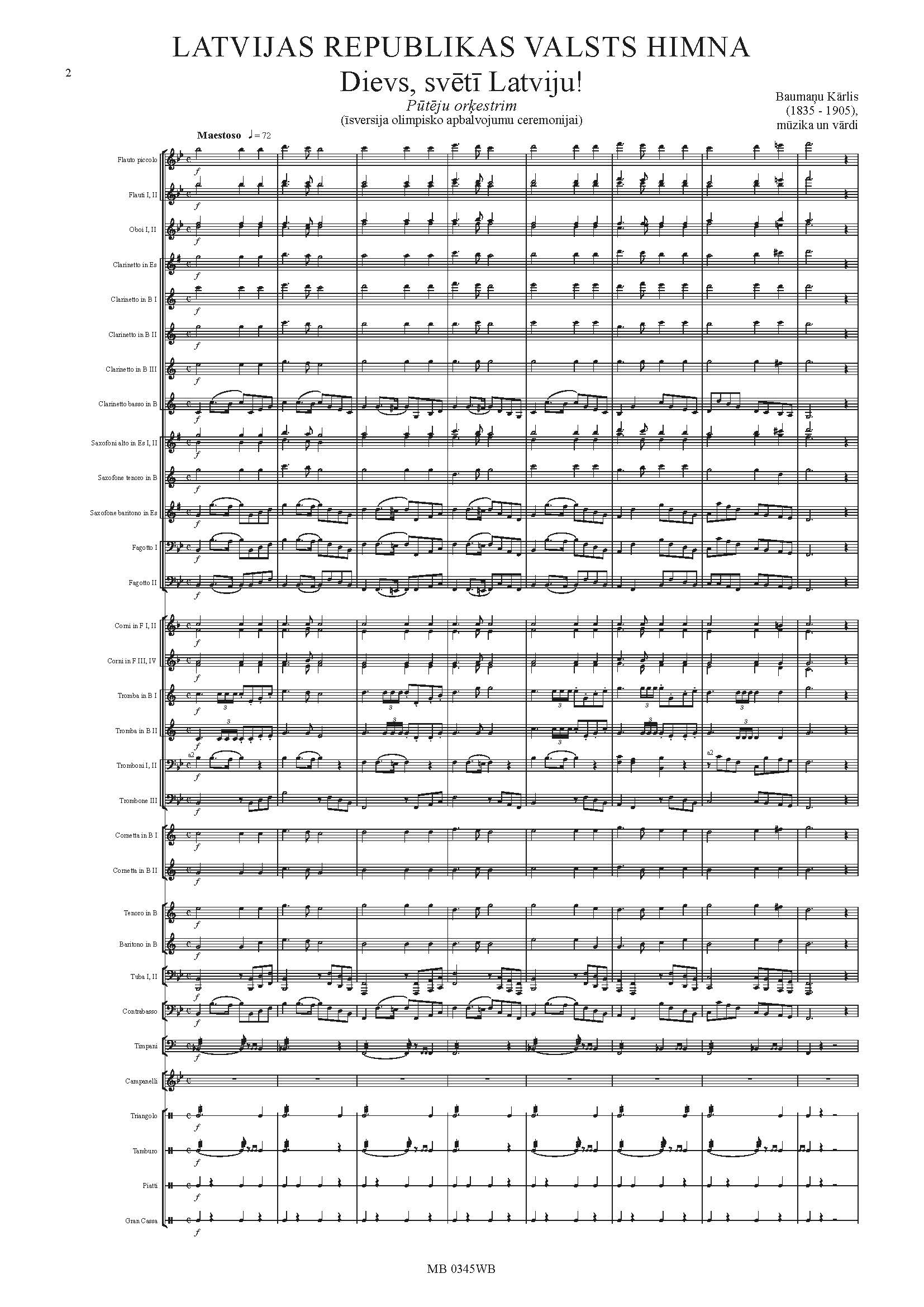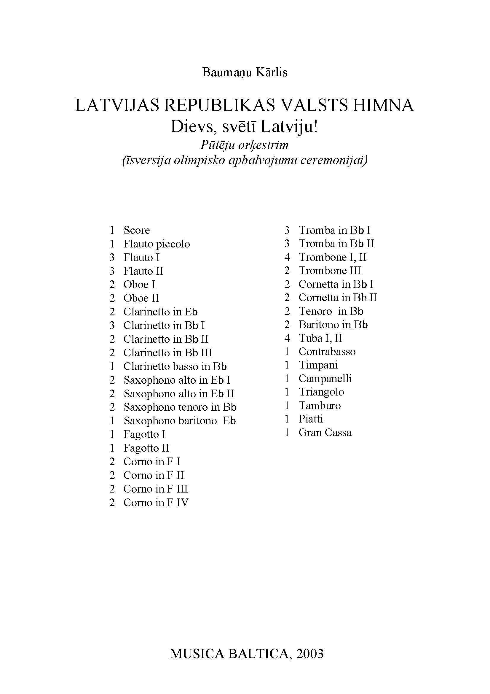 LATVIJAS REPUBLIKAS VALSTS HIMNA "Dievs, svētī Latviju!" ( Īsversija )
